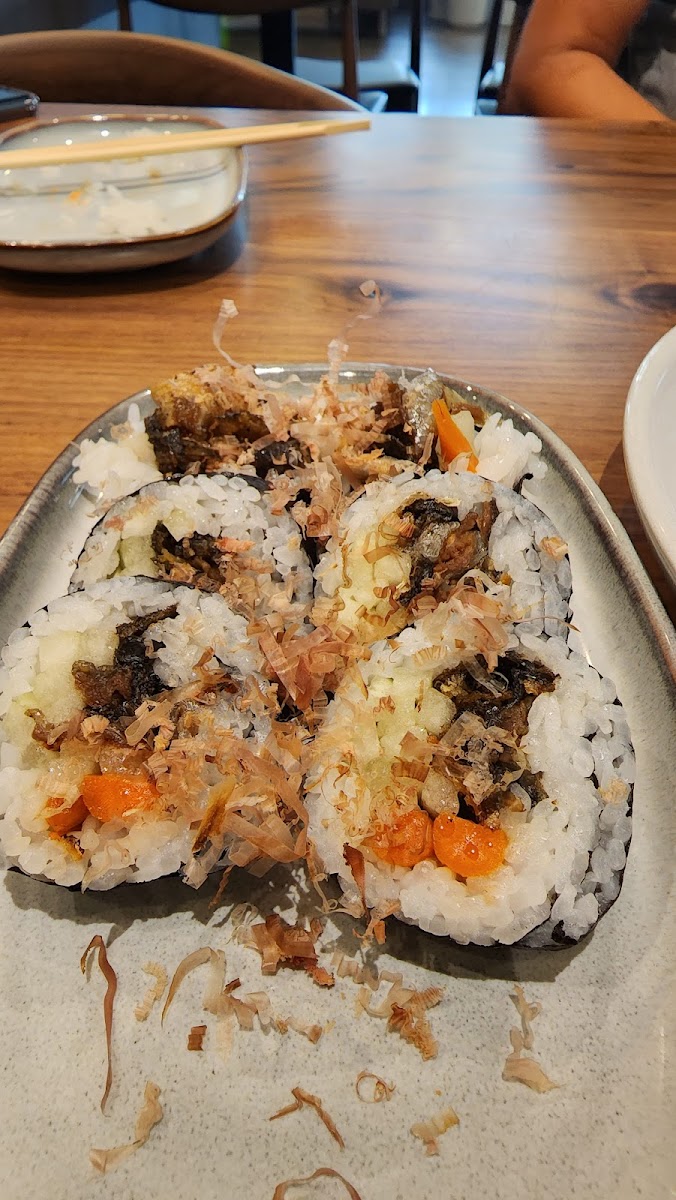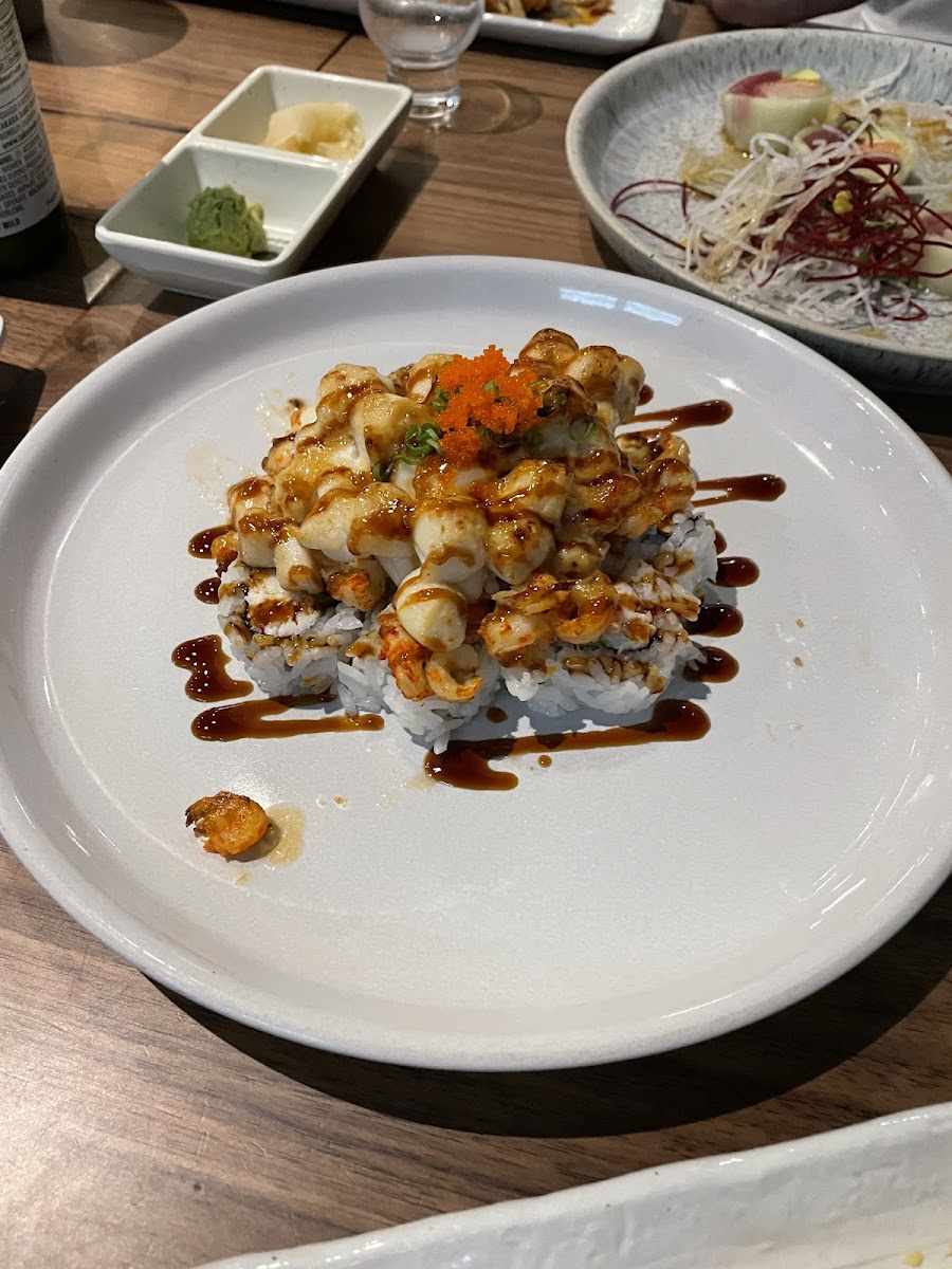 For sushi lovers, the BSCR Roll (a flavorful combination of spicy tuna, avocado, and crispy shrimp) is a must-order. It’s got the perfect kick and texture, making each bite an unforgettable experience. If you're in the mood for something lighter, the Chirashi Bowl is an excellent choice. This dish is a colorful mix of fresh, high-quality sashimi served on a bed of sushi rice. The Salmon Skin Roll also offers a unique twist, with the crispy salmon skin adding a delightful crunch to the roll's creamy texture.